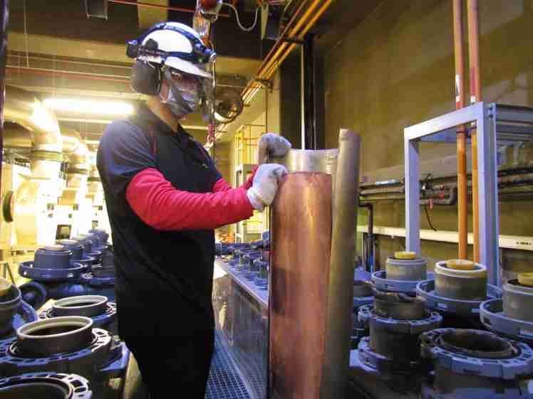 优游UB8将废弃物转化成有效的工业或民生原物料,,图为废铜液淬炼后再制成纯度极高的铜管