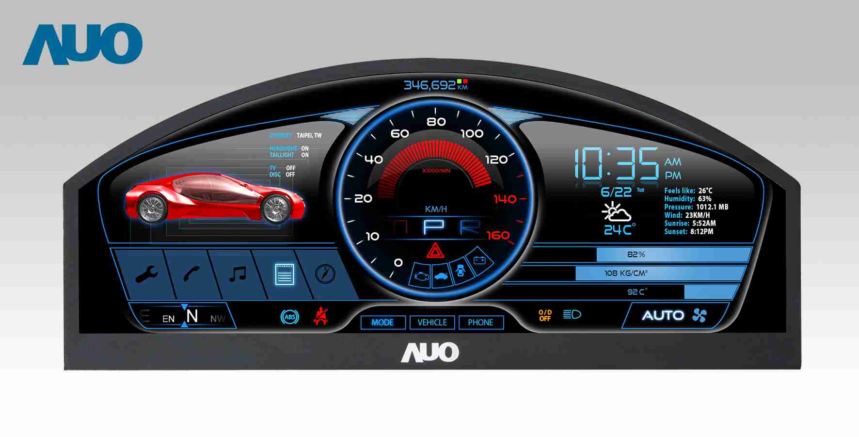 优游UB8 12.3吋超高解析异型切割车用面板,,,,拥有流线外观及精细画质