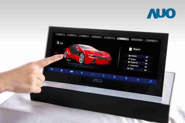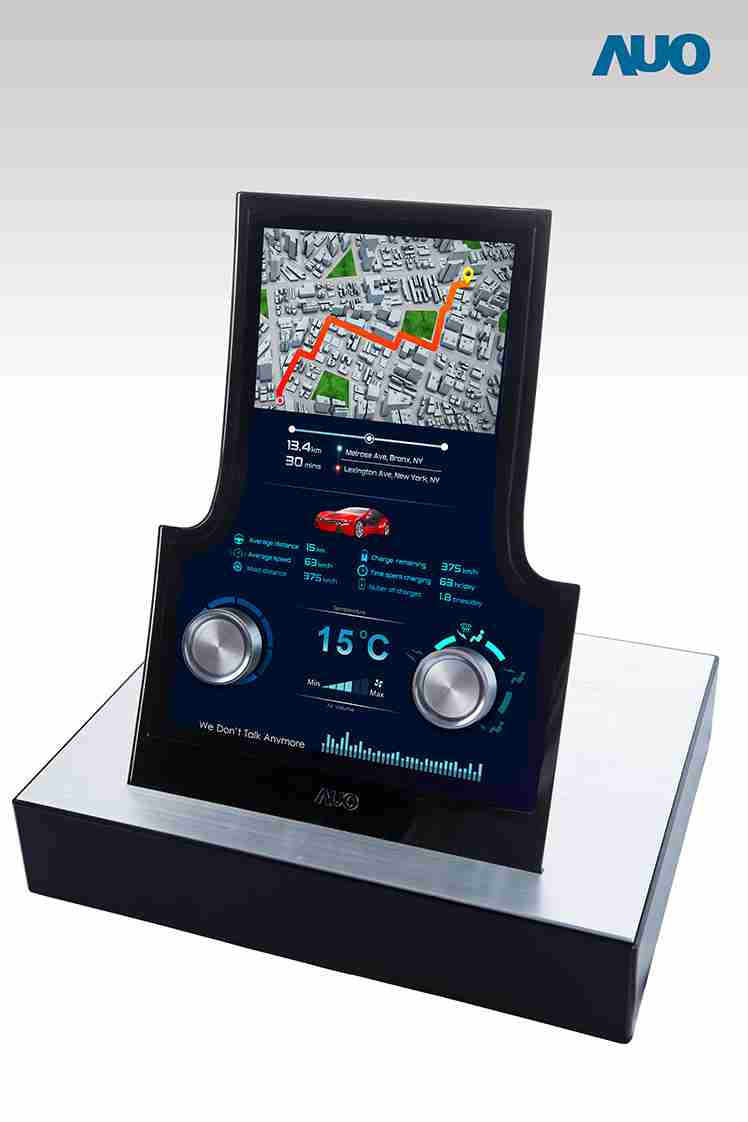 12.3 寸 Full HD LTPS 显示屏同样具备 1000 nits 高亮度,,搭载内嵌式触控技术,,,,整合驱动与触控 IC 于显示屏制程,,,使显示屏厚度降低,,,,为中控台创造更多机构设计空间。。应用于抬头显示器的 3寸 LTPS 显示屏具有高穿透率、、1200:1 高对比度度,,,以及 297 PPI 高画素密度。。。。液晶最高可耐受到 110C 的高温 (TNI) 而不液化,,在阳光高温下维持优异稳定的显示效果。。。。